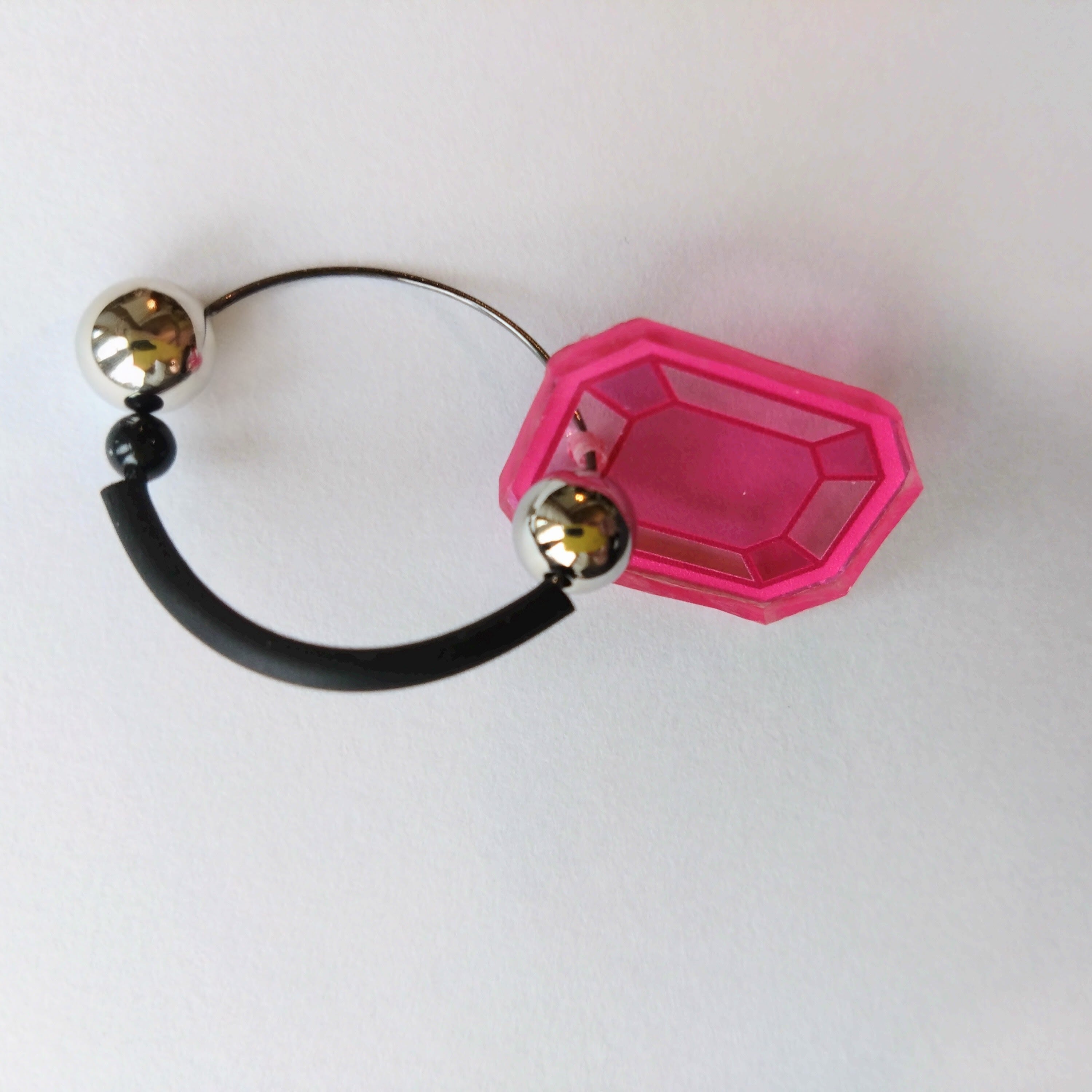 個性的なデザインが魅力的なアクセサリーです。宝石をモチーフにした遊び心あるデザインが、シンプルながらも存在感を放ち、幅広いスタイルにピッタリ!軽量設計で、耳元に華やかさを加えながらも、快適なつけ心地を実現します。