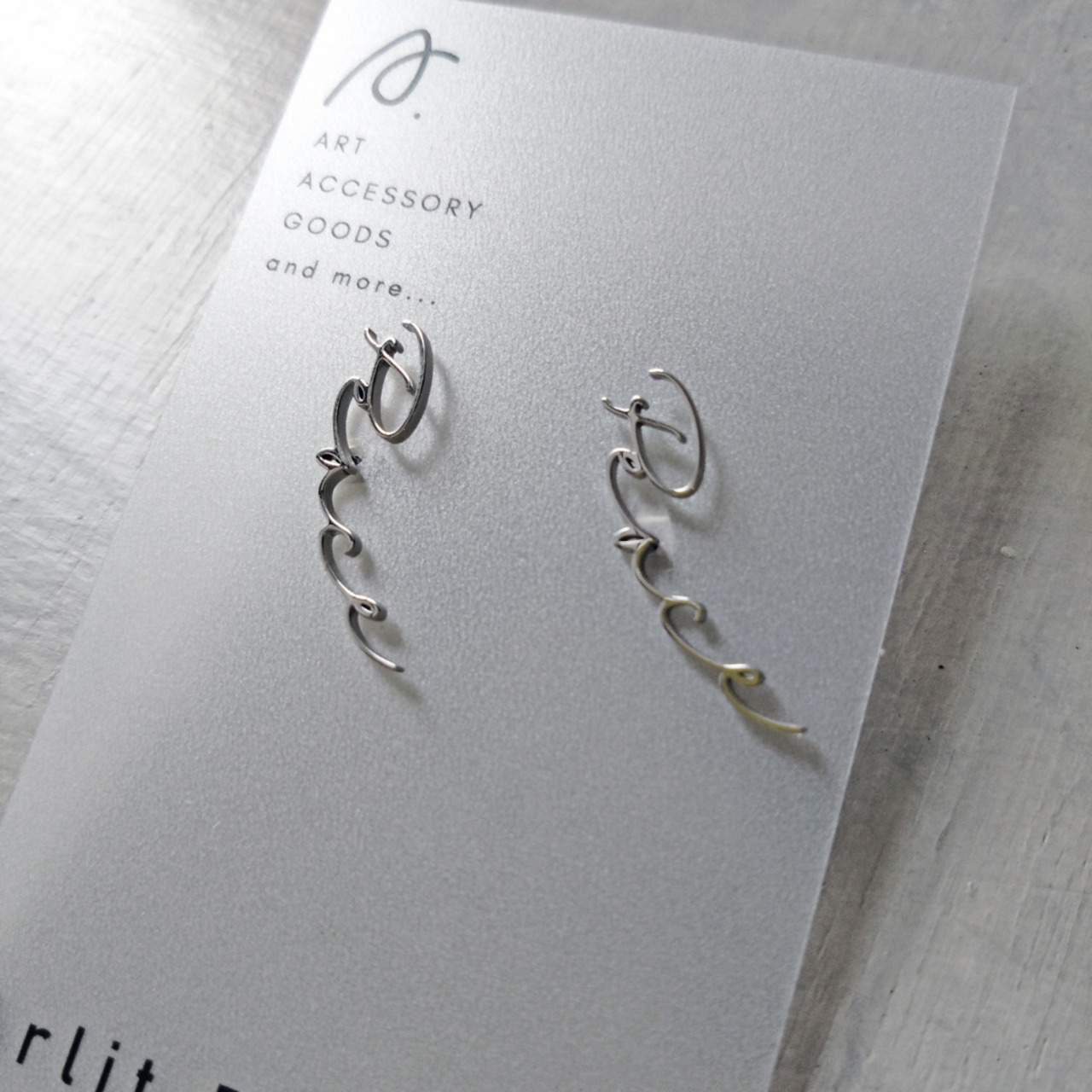 英単語をモチーフにしたデザインが、あなたの耳元を優しく彩ります。シンプルでありながらも存在感があり、カジュアルなコーディネートはもちろん、特別なイベントにもぴったりのアイテムです。