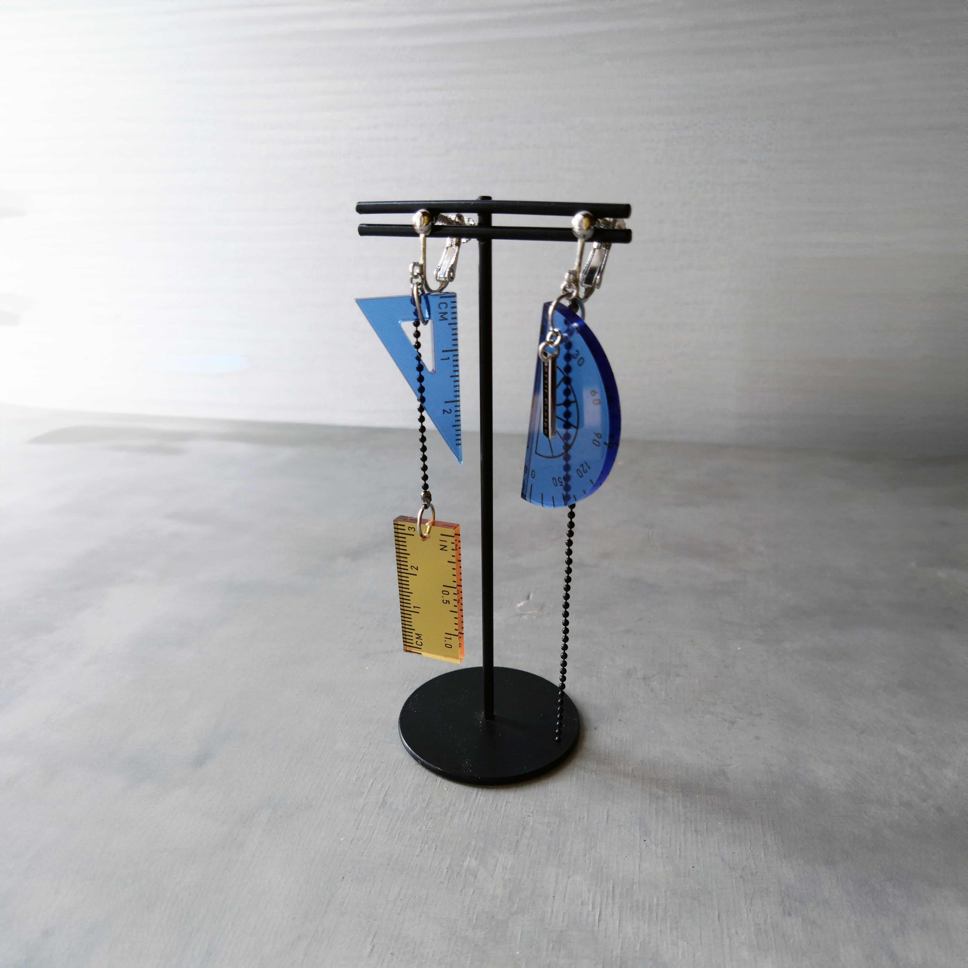 定規や三角定規、分度器などの幾何学的なツールから着想を得たデザイン。