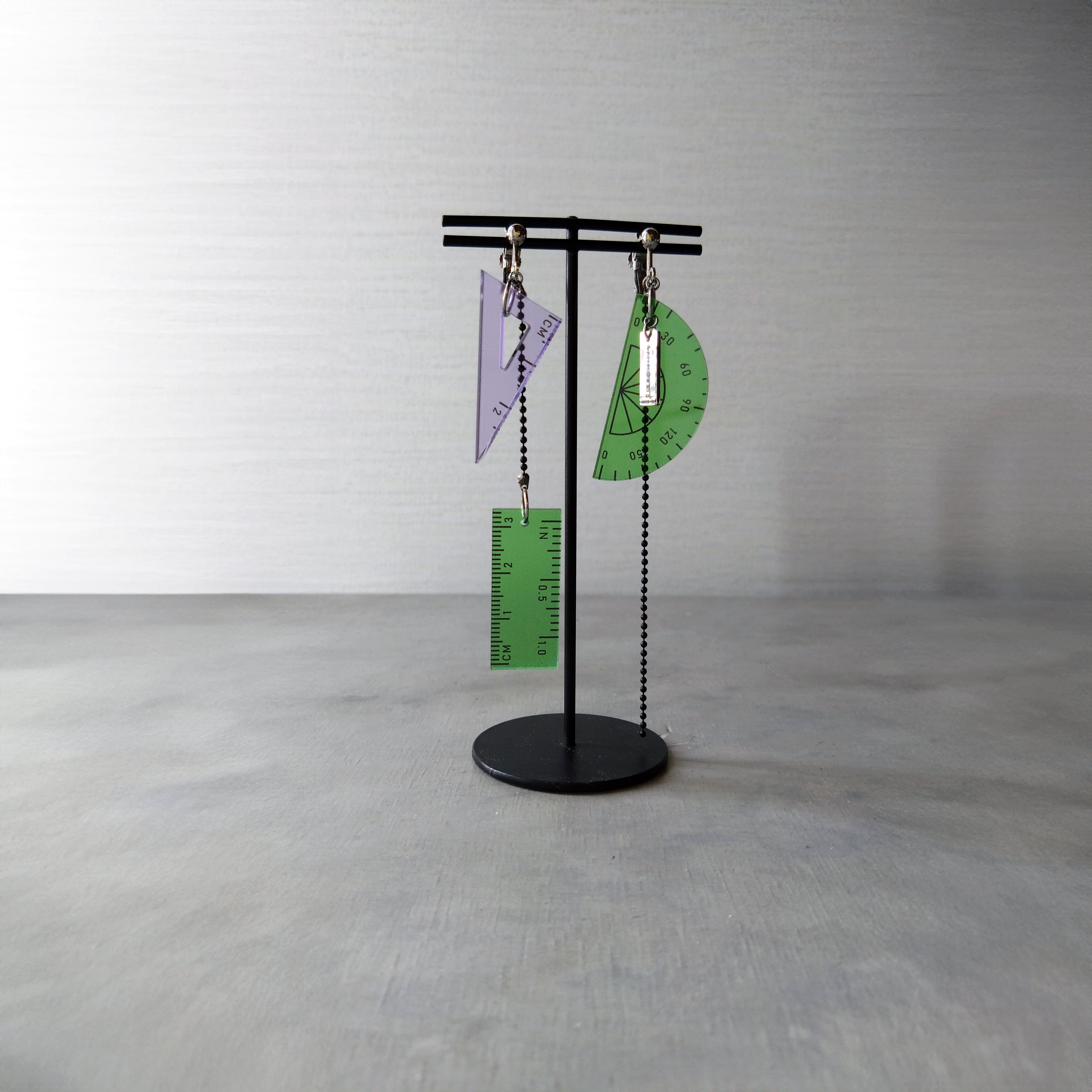 定規や三角定規、分度器などの幾何学的なツールから着想を得たデザイン。