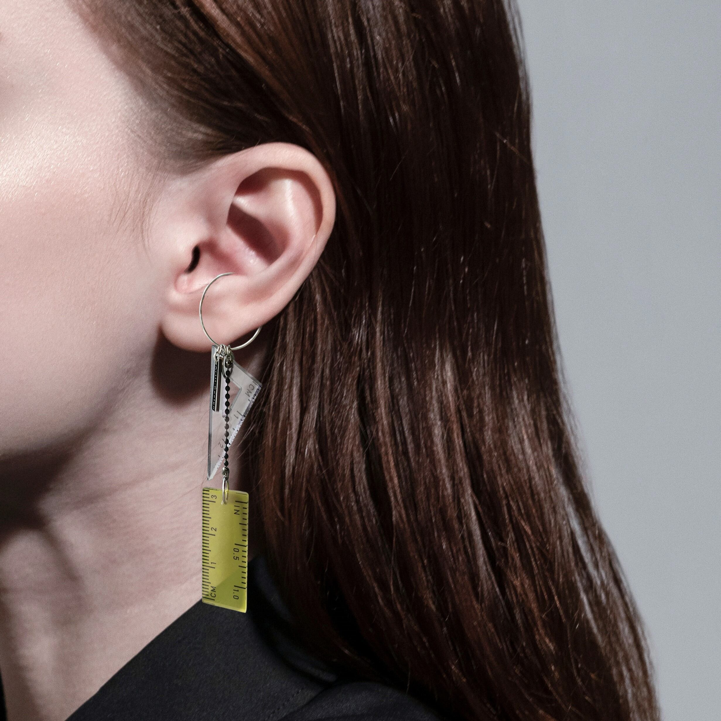 定規や三角定規、分度器などの幾何学的なツールから着想を得たデザイン。